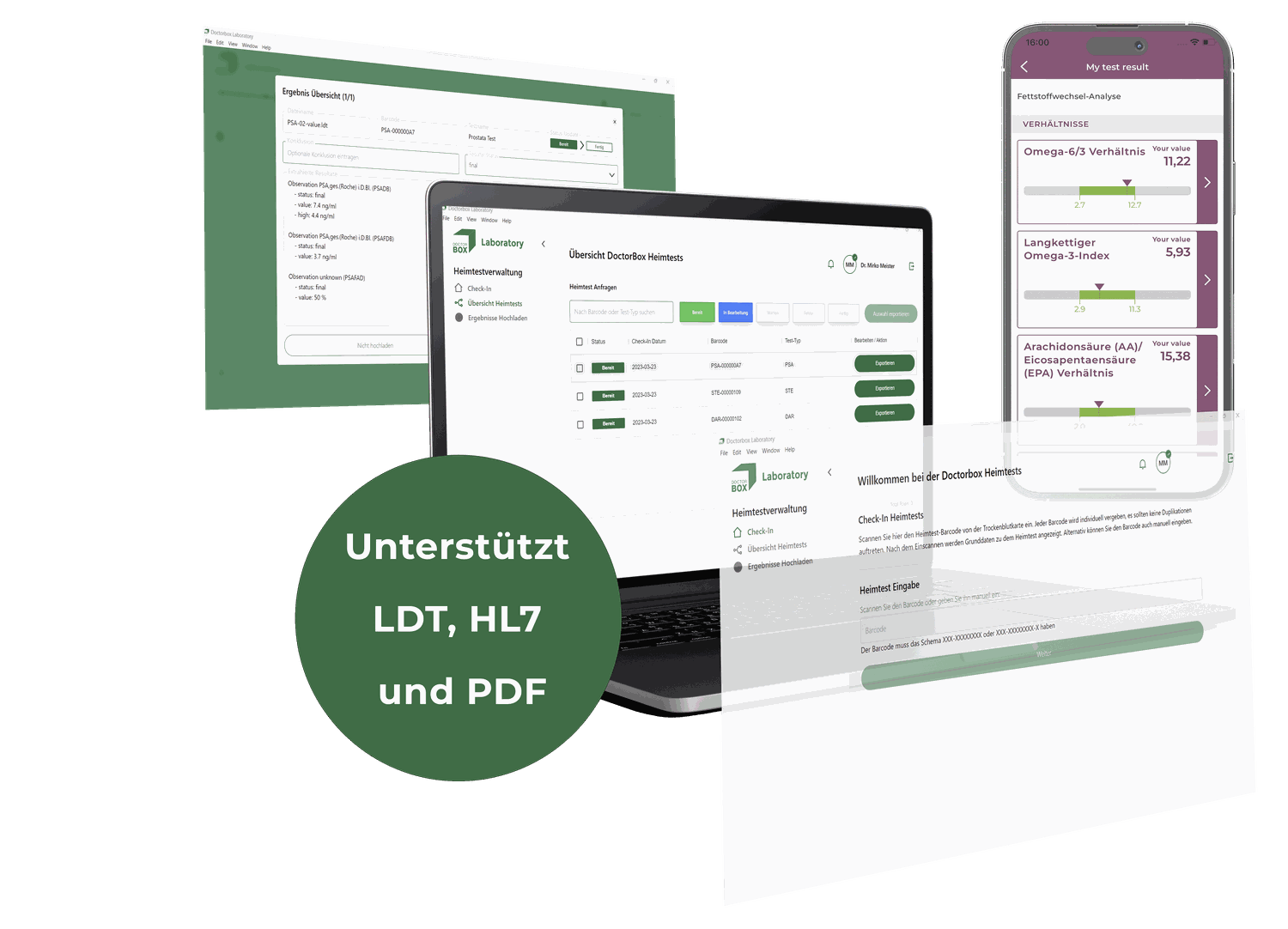 Die DoctorBox Lab ermöglicht Ihnen eine sichere Ende-zu-Ende verschlüsselte Übermittlung von Ergebnissen und Befunden. Sie können problemlos strukturierte Daten (LDT, HL7) oder PDFs hochladen und dem Patienten zur Verfügung stellen. Die DoctorBox Lab ist einfach in die lokalen Prozesse integrierbar.