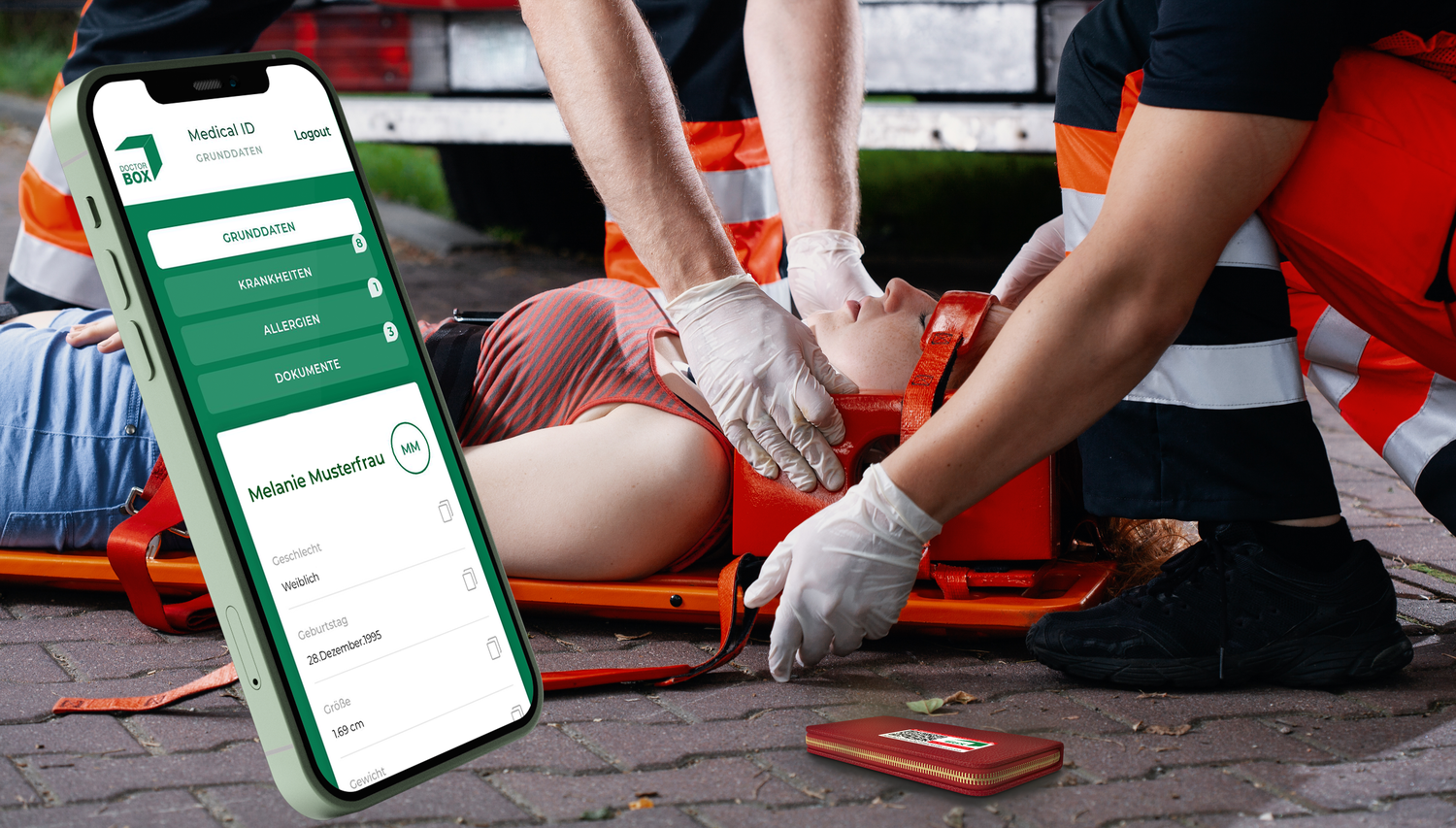 Im Falle eines Notfalls können Ersthelfer auf die Notfalldaten zugreifen, die in Ihrem DoctorBox-Gesundheitskonto hinterlegt sind. Sie haben die Möglichkeit zu bestimmen, welche medizinischen Informationen im Notfallsticker hinterlegt werden.