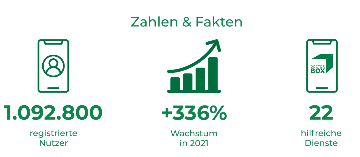 Mit einem Wachstum von 336% im Jahr 2021 und aktuell 1 Million registrierten Nutzer:innen ist DoctorBox eine der führenden Gesundheits-Apps in Europa und weist den Weg in ein neues, digitales Gesundheitssystem.