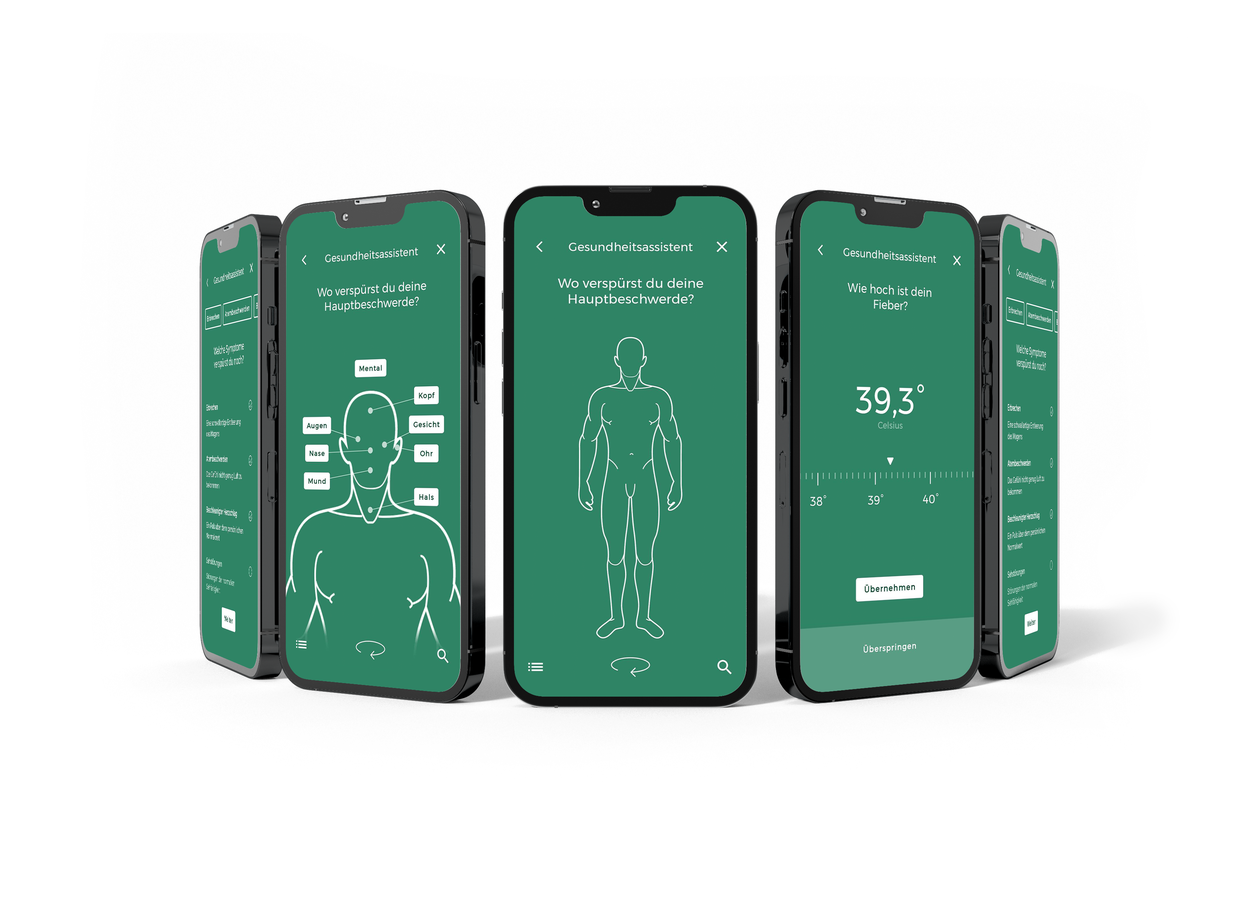 Der digitale Gesundheitsassistent ist ein zertifiziertes Medizinprodukt, das der zielgerichteten Ersteinschätzung von Symptomen dient, konkrete Behandlungspfade aufzeigt und zu entsprechenden Fachärzt:innen und Apotheken navigiert – ohne Warte- und Recherchezeit.